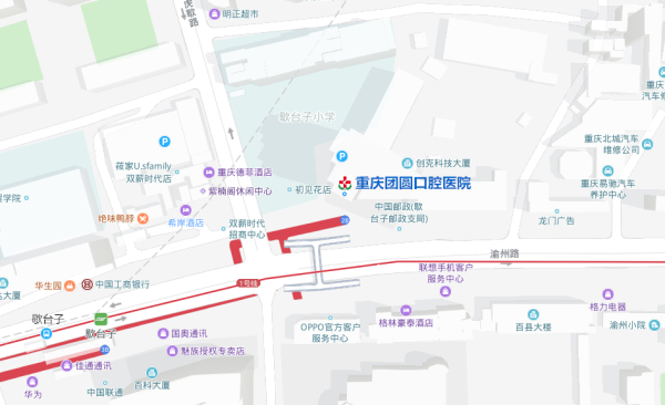 地图导航“重庆团圆口腔医院”或“渝州路99号”