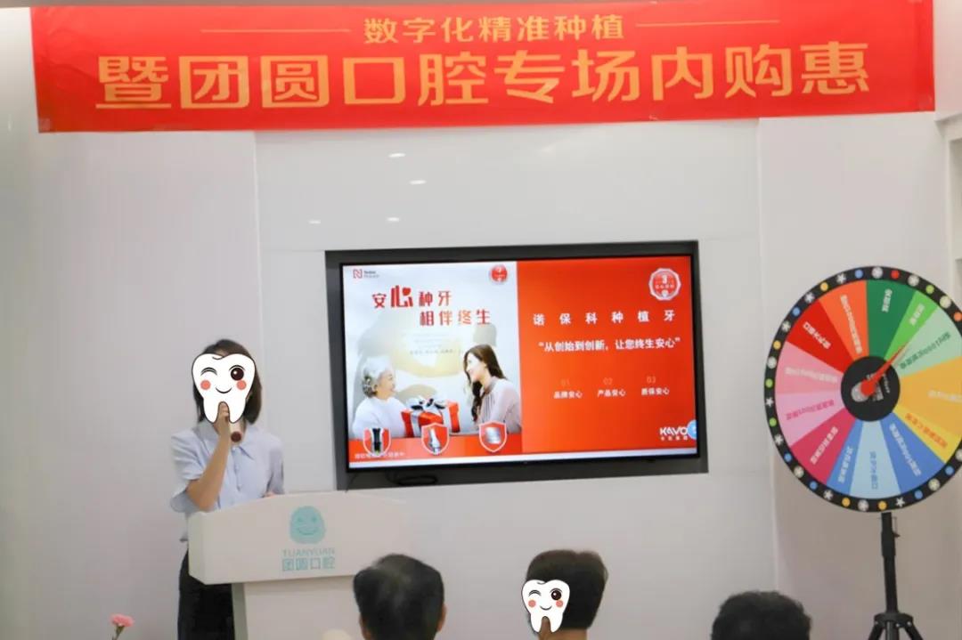 这是一场货真价实的实力比拼,更是一场直击人心的视觉盛宴,权威的种植牙专业讲座、真实的国际水准种牙直播、有奖问答现场互动、诸多大奖免费抽取、消费还有转盘大礼,厂商直购专项折扣……除了面对面交流学习了种植牙知识,还能带走医院精心准备的礼品,团圆口腔让每一位参与嘉宾都不虚此行。